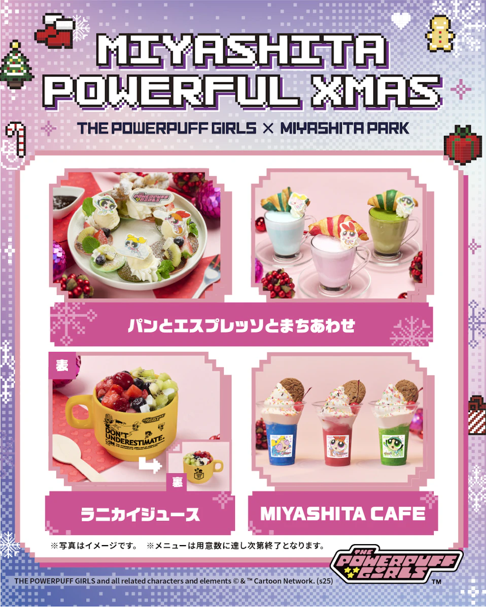 MIYASHITA PARKでは現在、期間限定でTHE POWERPUFF GIRLSと館内店舗のクリスマスコラボメニューや、コラボアイテムなどを販売中です!