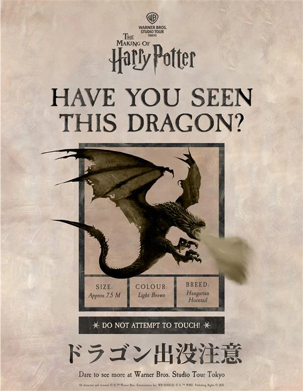 スタジオツアー東京にて好評開催中の特別企画「炎のゴブレット」では、映画4作目『ハリー・ポッターと炎のゴブレット』で、ハリーと対決したドラゴンの模型が新たに登場。映画制作当時の模型の型から新たにモデリングされ、劇中そのままにまるで足元に展示される金の卵を守っているかのような活き活きした躍動感のある姿をご覧いただくことができます。