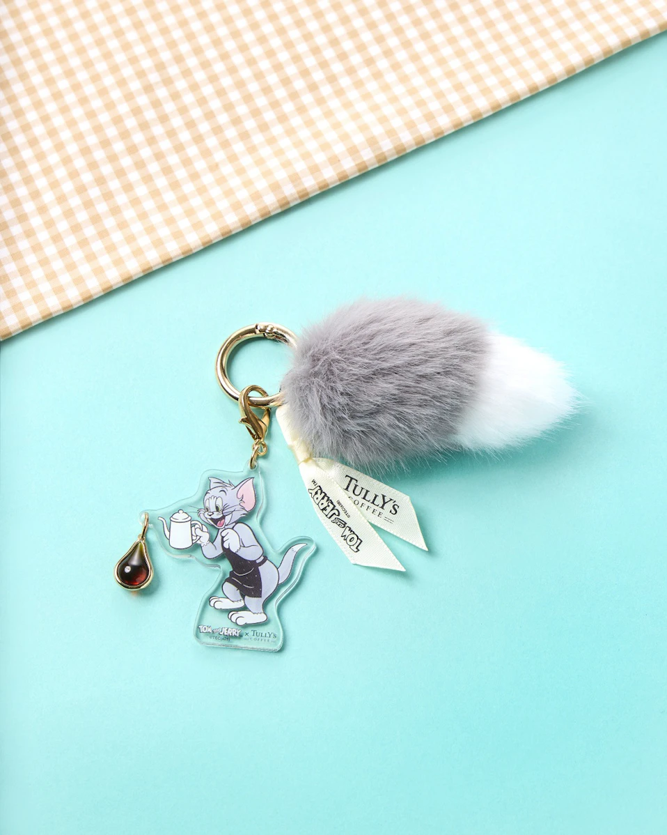 コーヒーを淹れるトムの姿と、ふわふわのしっぽがセットになったチャームです。