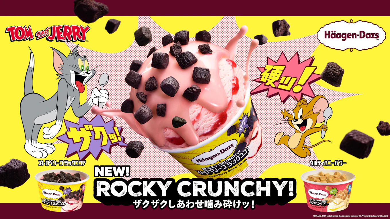 「トムとジェリー」が登場する新WEB CM、「ROCKY CRUNCHY! ストロベリーブラックココア」篇と「ROCKY CRUNCHY! ソルティハニーバター」篇が、ハーゲンダッツ公式YouTubeや公式HPで公開されました。