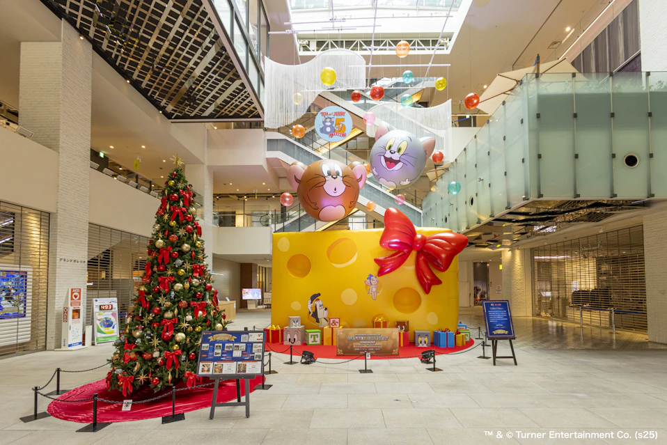 MARK IS みなとみらい 1階 グランドカレリアには、ホリデーギフトが大集合した、高さ約3.5mの巨大バルーンオブジェ「Tom and Jerry CHEESE GIFT」が登場。