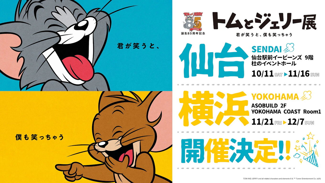 東京を皮切りに、大阪や福岡、名古屋など全国を巡回し大好評を博している「誕生85周年記念 トムとジェリー展 君が笑うと、僕も笑っちゃう」の仙台と横浜での開催が決定!